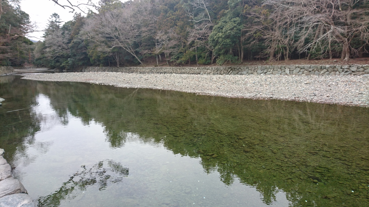 内宮の手水舎で清めてきたものの、途中に五十鈴川があるので、手だけ再度お清めしました。