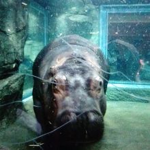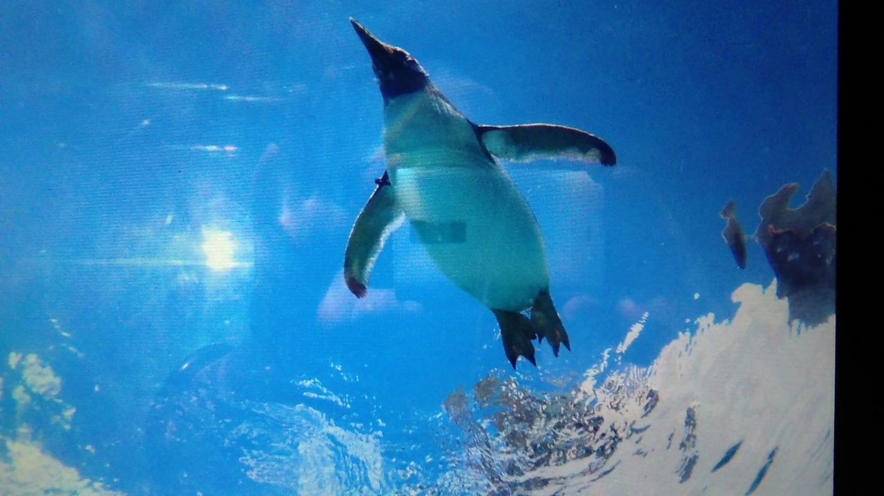 ペンギンの水槽を下から見上げると泳いでいるペンギンが空を飛んでいるみたいです