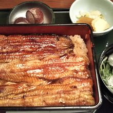 うな重を注文しましたが、ご飯大盛りも無料とのあんないでした。お隣の席の女性は大盛りにしていたので、それほど多くはなさそうでした。