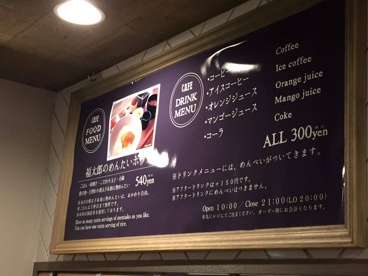 こちらでは物販のほか、福太郎の明太子を存分に味わえる定食が540円で提供されていて、博多名物を手頃にカジュアルに楽しめます。店の奥の小さなカウンターで数席しかないので、一人や少人数でサッと食事を済ませたい時に良さげです。自分は日曜の夕方早い時間に行ったので、すぐ座れましたが、あとから来た人たちは待ってました。