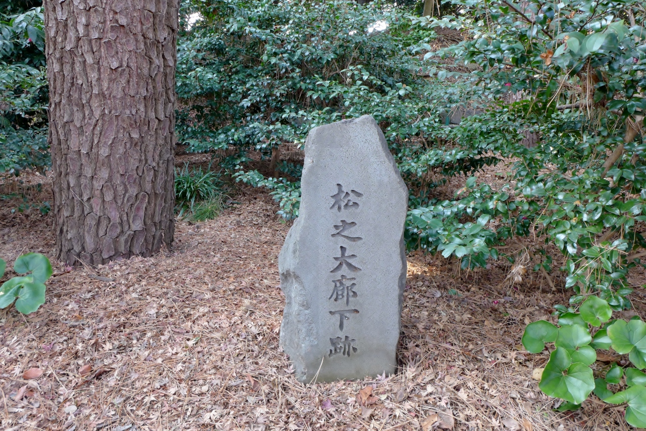 本丸御殿のもっと中心だったのかと思っていましたが意外に端の方でした。今は松の樹が多くありますが当時の様子は想像するしかありません。それにしても被害者が軽傷にも関わらず即日切腹のお裁きは如何なものかと思いますね。
