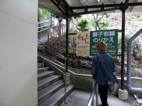 乗り継ぎ駅の榧谷駅(かやたにえき)から獅子岩駅(ししいわえき)までは、30人乗りの大きなゴンドラが15分間隔で運行されるので、運が悪いと待たされます。