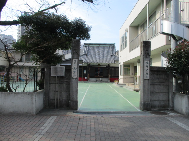東京メトロ丸の内線後楽園駅から文京区役所の先の富坂下交差点を渡って源覚寺の先を右折し善光寺坂を上り進むと伝通院の向かい側の福聚院大黒天に歩いて10分ぐらいで着きます。福聚院大黒天は浄土宗の寺院で安永3年(1774年)伝通院の末寺として創建されたそうです。本尊の大黒天像は座高47.2cmの鎌倉時代の座像で見ごたえありますので伝通院訪問の際は足を延ばしてお立ち寄りをお勧めします。隣が幼稚園になっていて寺院の境内が幼稚園の園庭となっていますが