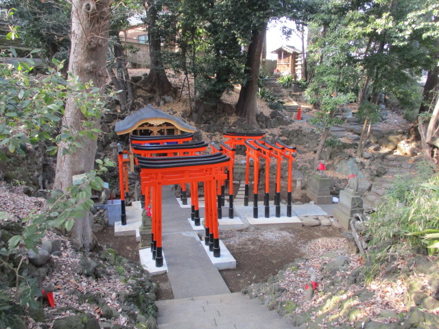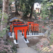 朱塗り鳥居の稲荷社の祠は見ごたえあります。