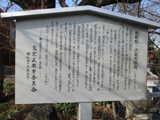 東京メトロ丸ノ内線後楽園駅から文京区役所の先の富坂下交差点を渡って源覚寺(こんにゃくえんま)の先を伝通院方面へ善光寺坂を上り進むと慈眼院 沢蔵司稲荷に歩いて10分ぐらいで着きます。慈眼院 沢蔵司稲荷は元和6年(1620年)伝通院の塔頭寺院として創建され、澤蔵司は伝通院にいた修行僧の名前らしいです。境内の奥にある石段を下ると重なる朱塗りの鳥居の先に稲荷社の祠(ほこら)が見ごたえあります。パワースポットとしてお馴染みですので伝通院訪問の際は足を延ばしてお立ち寄りをお勧めします。