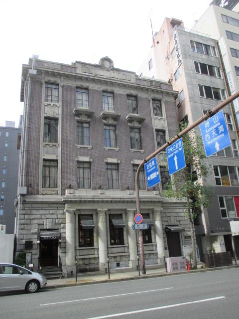 この北浜の界隈は、レトロなビルディングが多く、建築ファン必見の場所です。この新井ビルの”井”の文字は、看板の”井”が何とも不思議な文字です。これがまたレトロな雰囲気を出します。2Fから4Fは、全て窓の形が違っている3層構造で素敵ですよ。