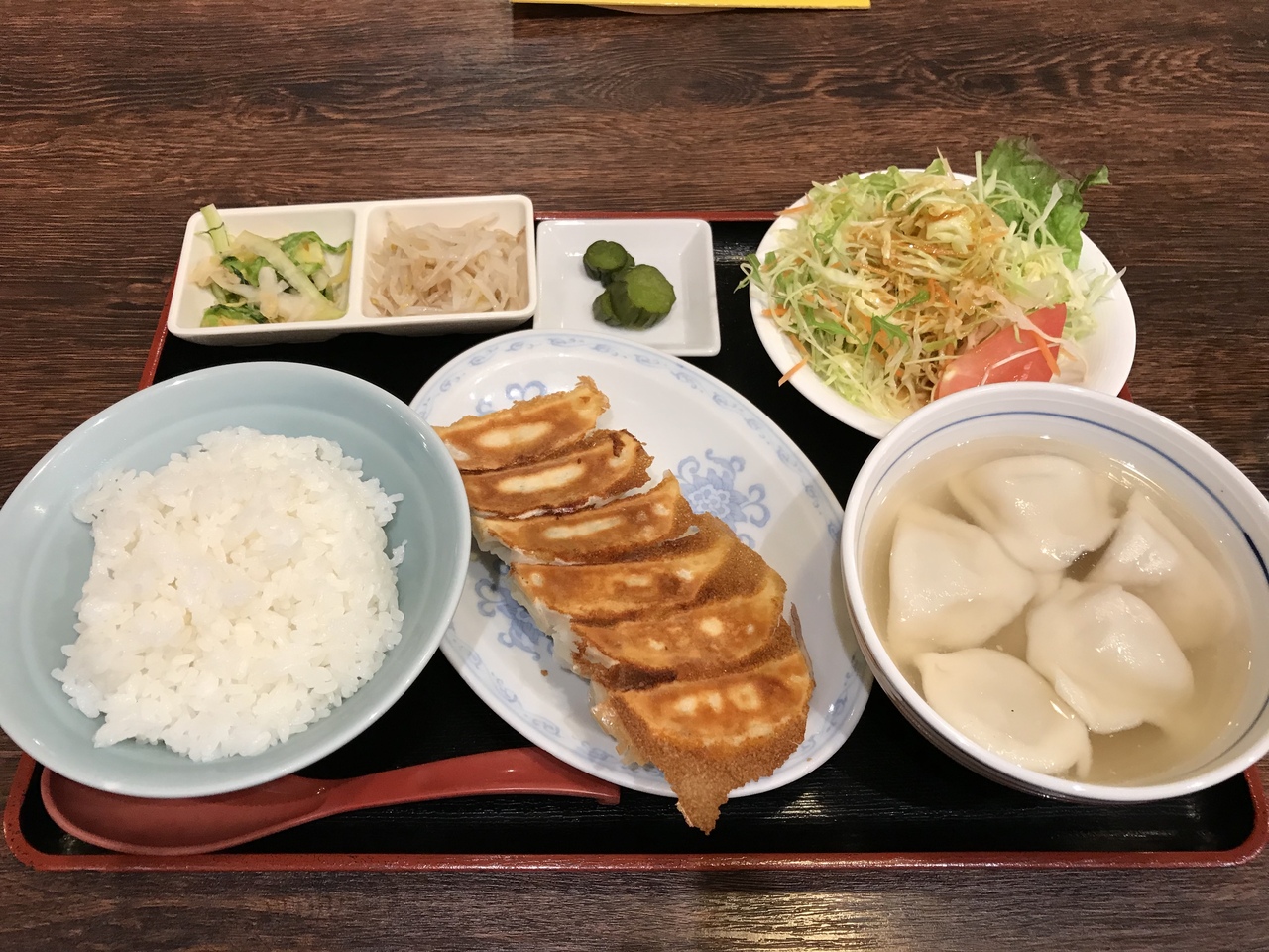 宇都宮駅前にあり、メニューも豊富。お薦めは、焼餃子、水餃子定食780円。