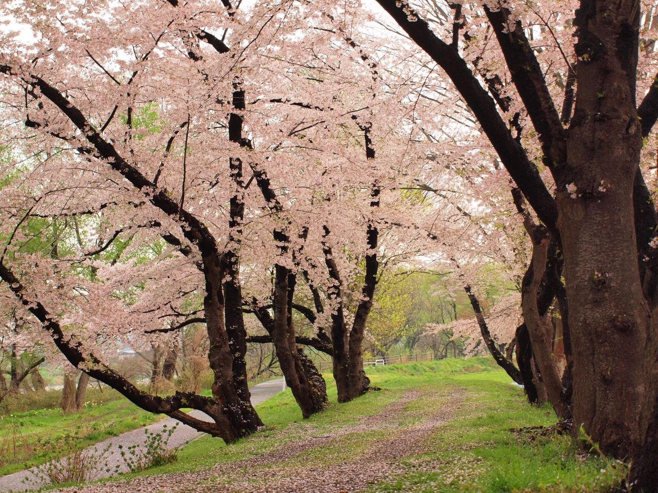 桜並木を、ず~っと先まで歩いて、帰りは並木の外側から眺めたり。また渡し舟に乗って川から眺めたり。
