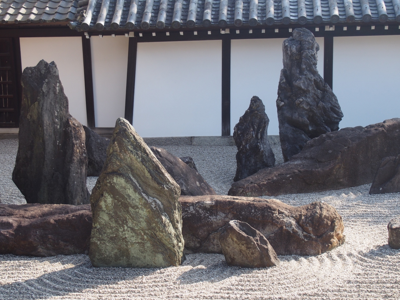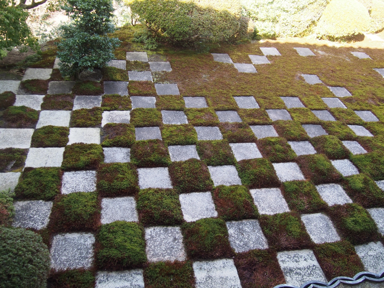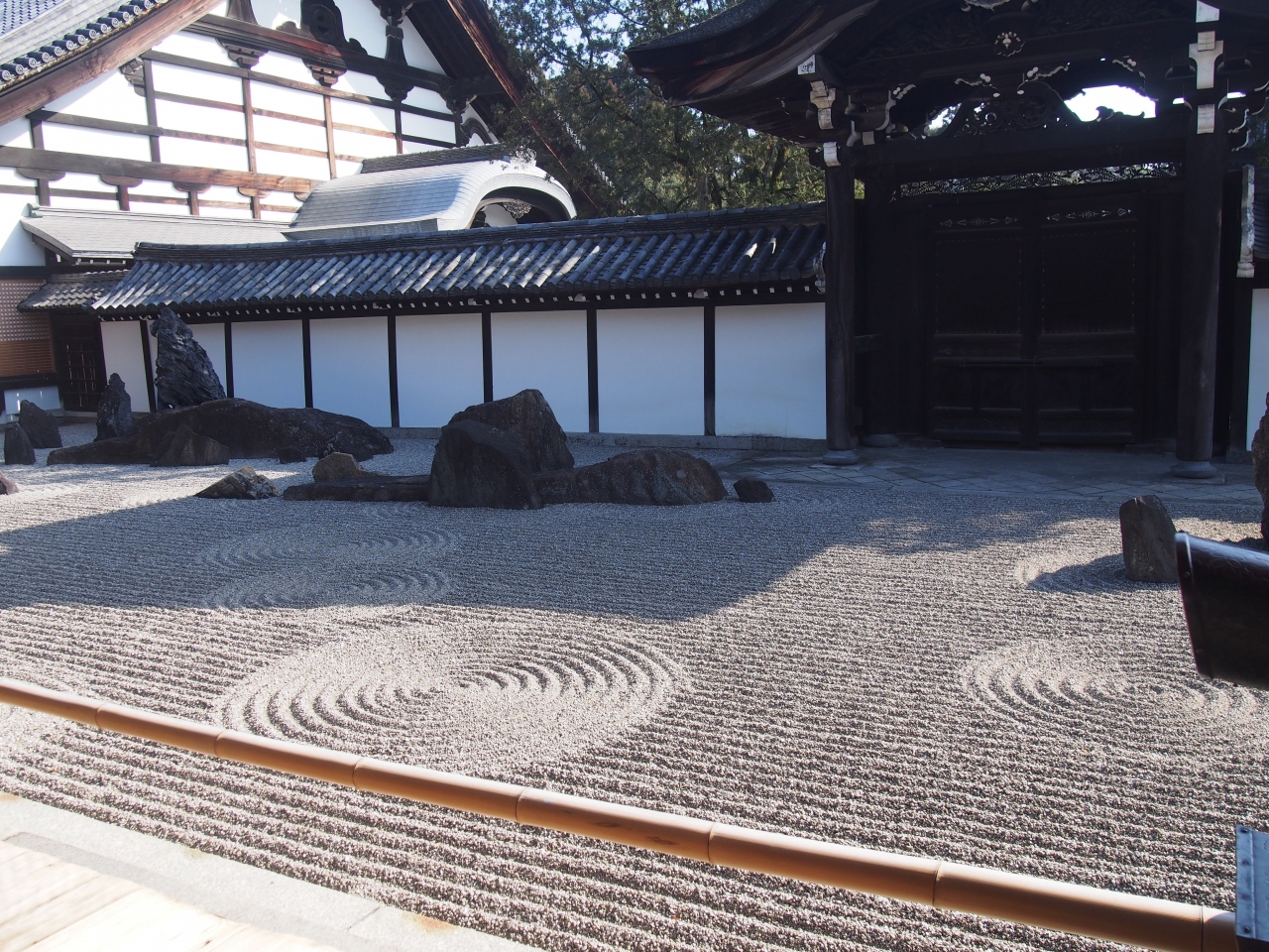 東福寺の方丈にある庭園です。東西南北のそれぞれコンセプトが違う庭園があります。大きい庭園ではありませんが、それぞれ十分見る価値のある素晴らしい庭園です。四角形の置き石と苔との市松模様の庭園は現代絵画のようでもあります。冬の時期の苔は元気がなさそうで、次回は梅雨、夏の時期に見てみたいです。
