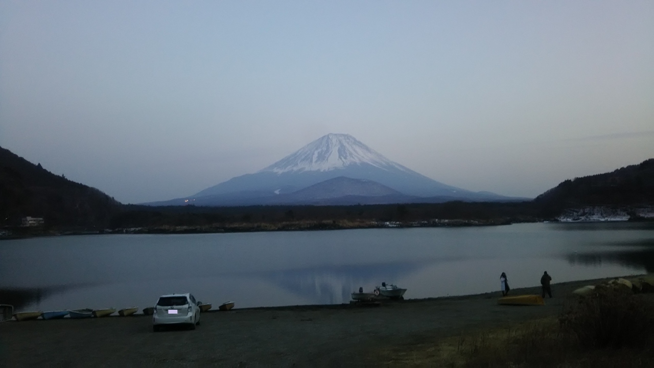 ボートに乗らなくても、湖面から富士山を眺めるような感じに見えます。そのためか車で来る人が多く、岸辺で富士山と一緒の写真を撮っていました。