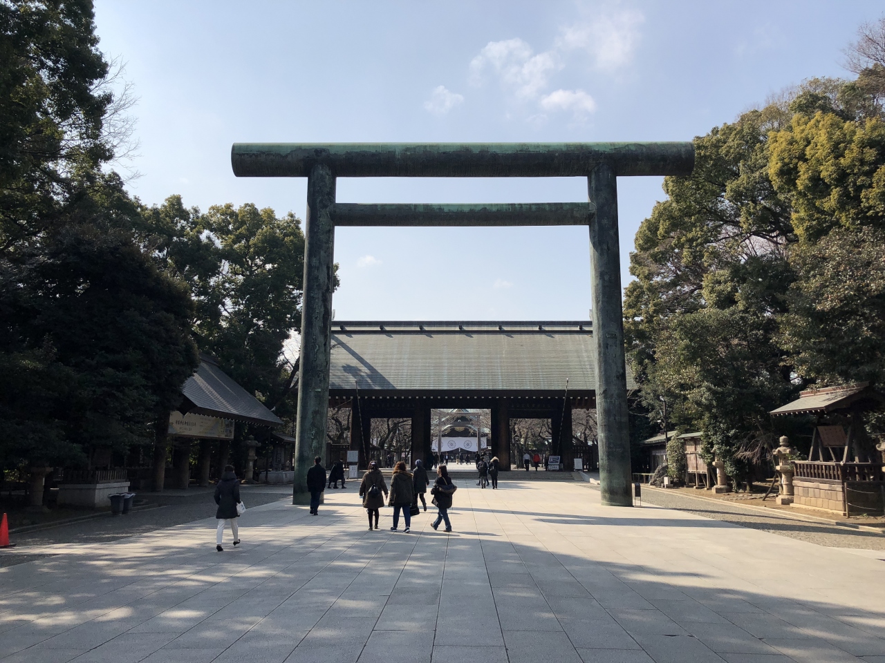 参道の並木道は工事中のため、植物等はあまり見ることができませんでした。政治的な問題が発生しやすい場所のせいか社の前にも警察の方がいらっしゃいました。季節柄派手な服の方はいませんでしたが、場所柄、控えめな服装での参拝をオススメします。