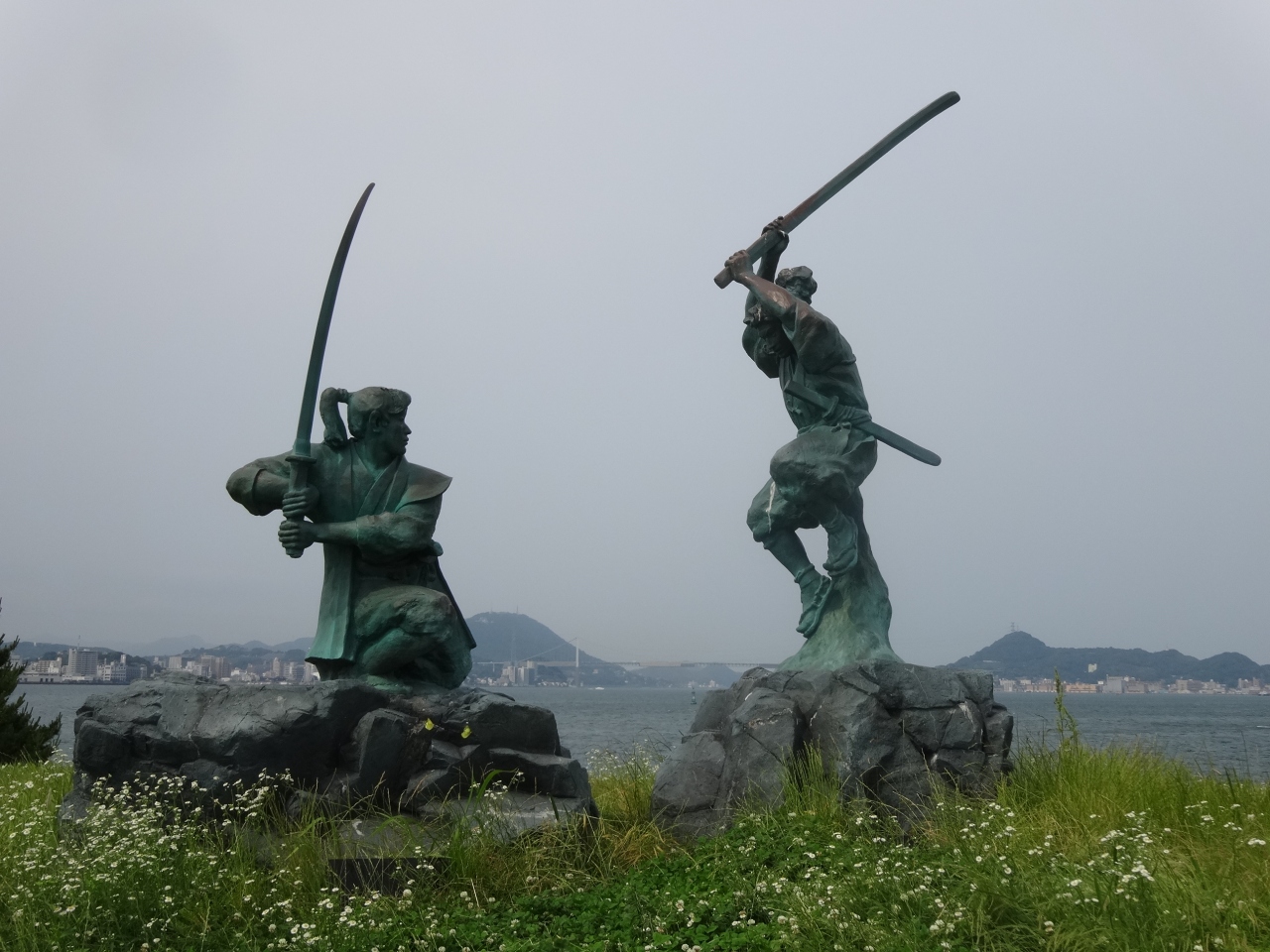 武蔵vs小次郎の巌流島の戦いは知っていましたが、下関に巌流島があることは知りませんでした。門司および下関から巌流島行きの遊覧船が出ています。武蔵vs小次郎の銅像があるほか、神社や武蔵が乗ってきた舟の展示があります。