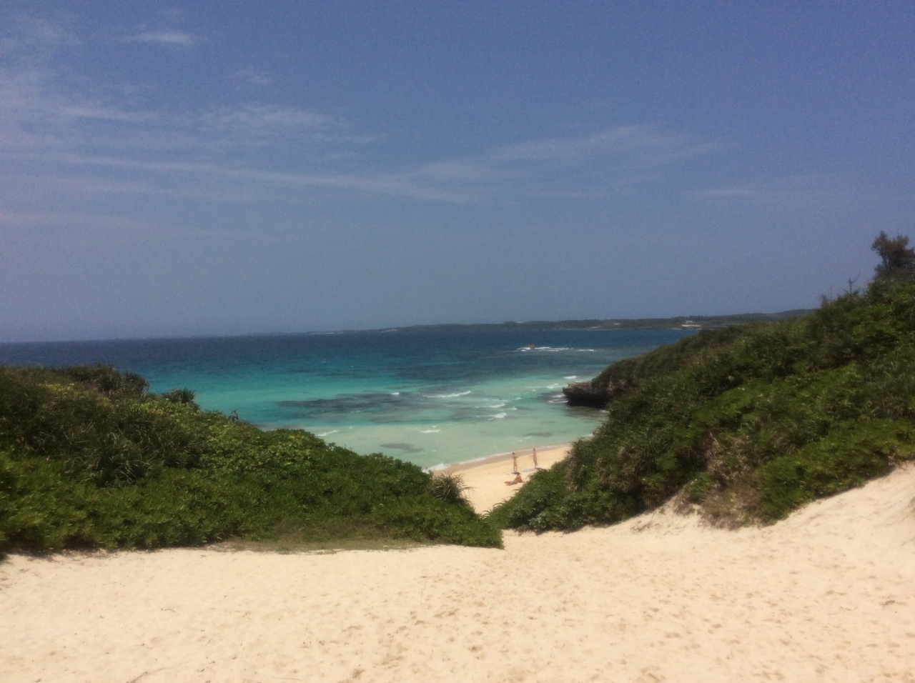丘を下ると 宮古島ブルーの海と砂浜、 天気に恵まれたら