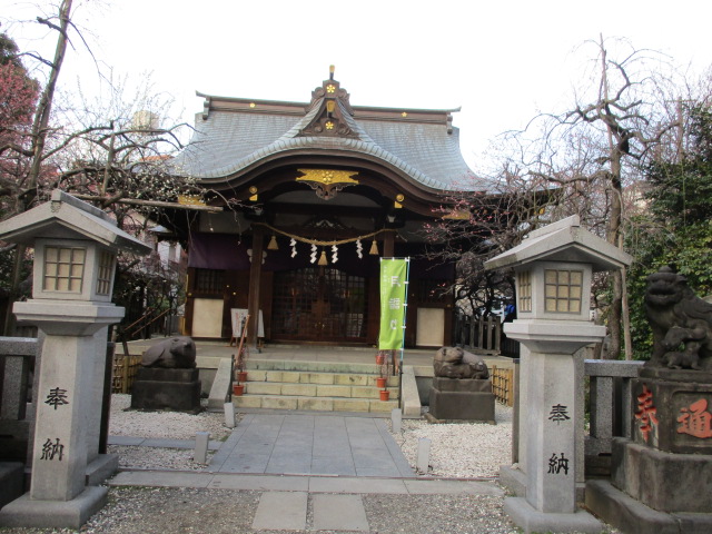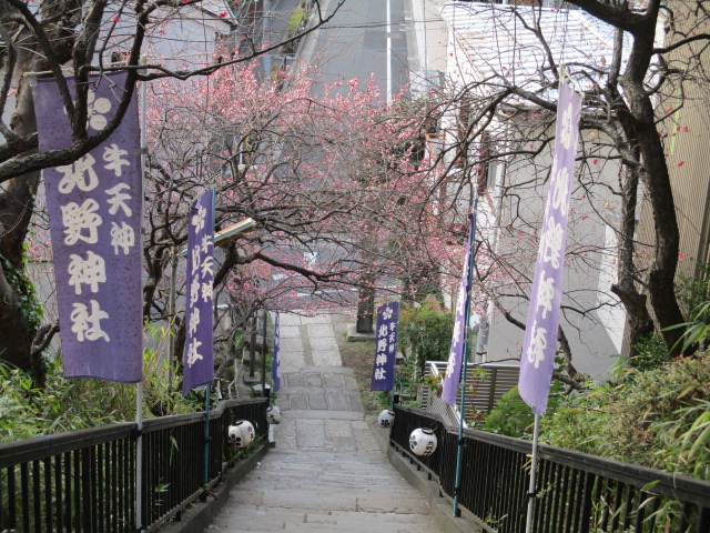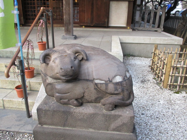 東京メトロ丸の内線後楽園駅出口より礒川公園内を散策し春日通り沿いの春日局像の先の中央大を通り過ぎ左折し西岸寺の先に進むと牛石(牛天神北野神社)に歩いて20分ぐらいで着きます。牛石は牛天神北野神社の境内に鎮座するなで石です。源頼朝がこの地で休憩時、夢の中に牛に乗った菅原道真公が現れ、その後ここにあった牛に似た石を御神体とし牛天神が創建されたそうです。撫でると願いが叶うそうですので小石川後楽園訪問の際は足を延ばしてお立ち寄りをお勧めします。社殿前の枝垂れ梅がピンク色の花を咲かせて見ごたえありました。