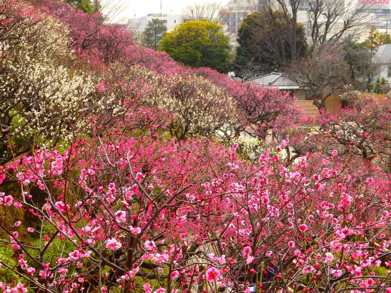 都営浅草線・西馬込駅から10分ほど、東急池上線・池上駅から20分ほどの場所にある大田区立の梅園。入場料は大人(16歳以上65歳未満)100円で、手頃に楽しめます。園内には370本ほどの梅が植えられ、1月の蝋梅から3月上旬まで2ヵ月に渡り、30種ほどの梅が楽しめるそう。