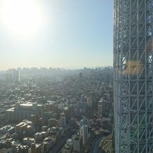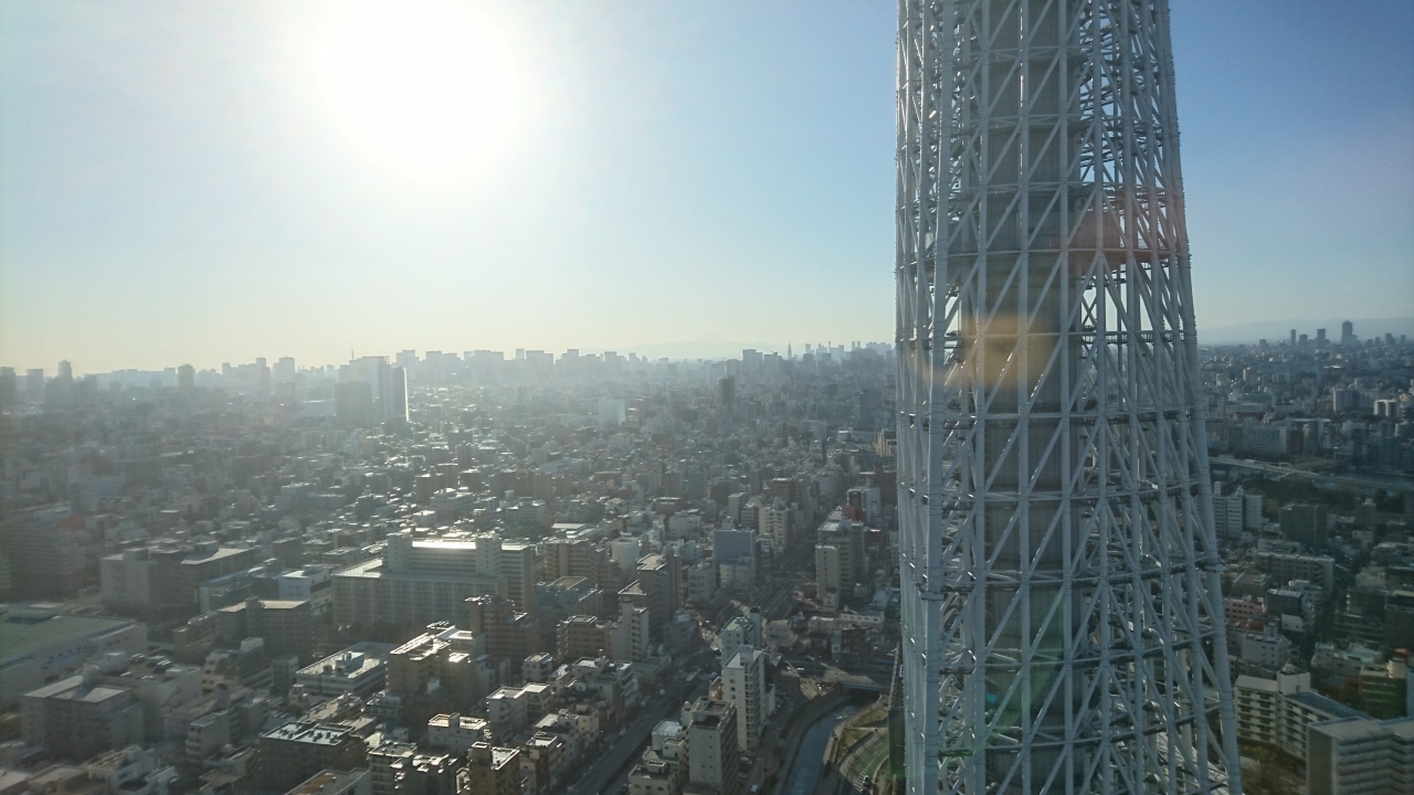 東京スカイツリーに行く前に東京ソラマチに寄りました。その商業施設の最上階である31階からは東京の街並みを一望できました。また、東京スカイツリーの下の部分も見ることができました。スカイツリーに行く前に寄った甲斐がありました。