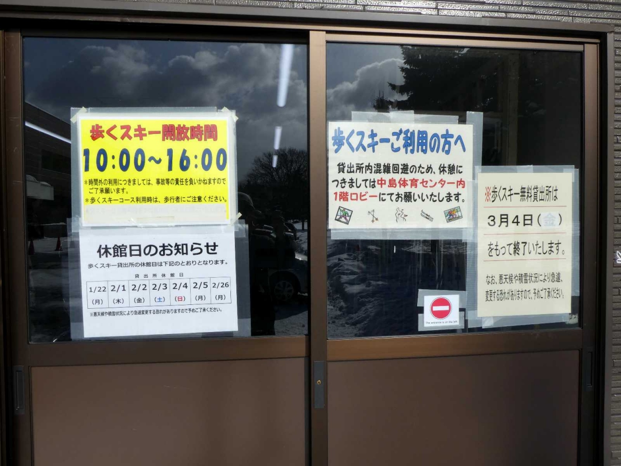 私は、こういうサービスが行われている事を知らずに中島公園を散策していて、素人っぽいスキーヤーが続々とやってくる事が気になり、そのコースを遡って歩いて、この施設の存在を知りました。2017年度の貸出開始時期は知りませんが、終了は2018年3月4日です。