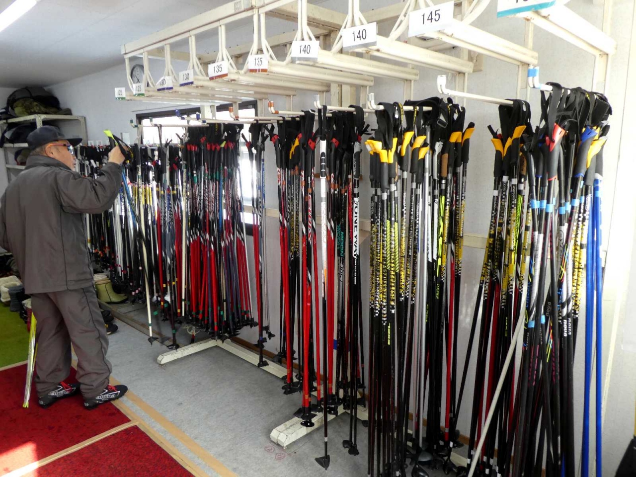 - 平日のスキー貸出所に先客はおらず待ち時間0