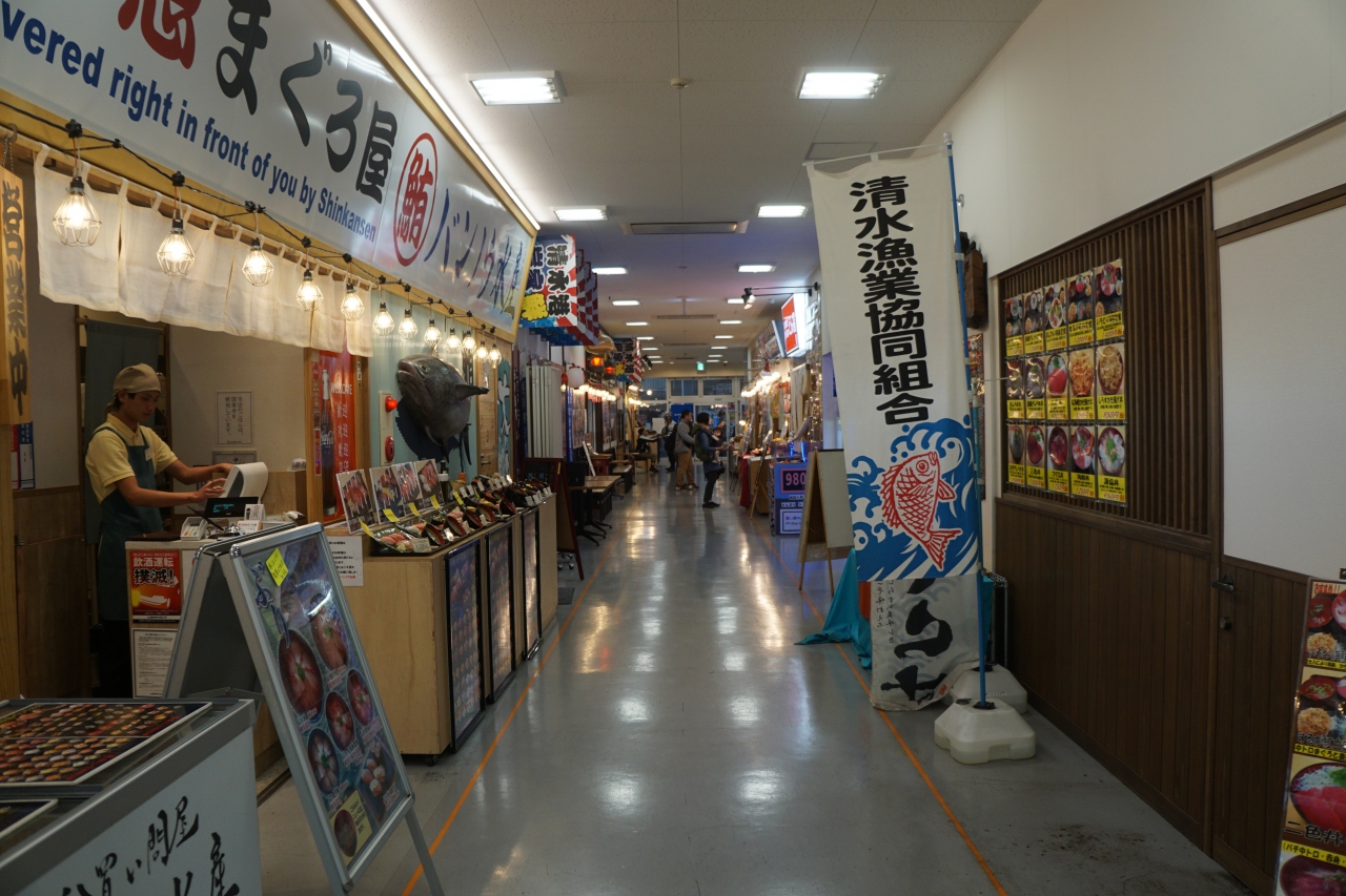 河岸の市は、まぐろ館といちば館の二つのエリアがあって、食堂のエリアがまぐろ館。限られたエリアに同じような店が軒を並べて、どの店も新鮮さやお得感をアピールしています。結局、それぞれ差はないような感じもしますが、そこは迷いながらお店を選ぶ楽しさがあると思います。