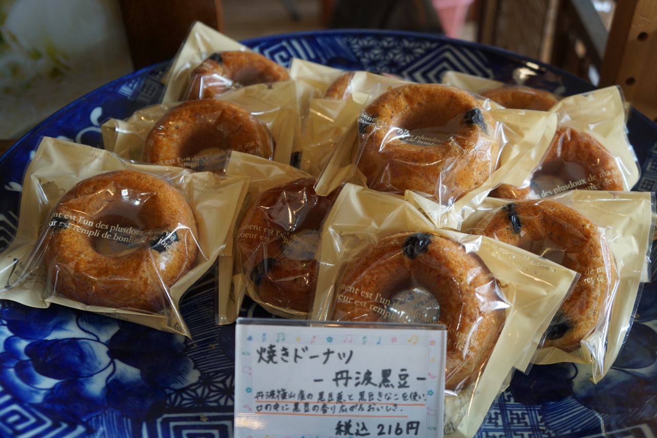 雪岡 市郎兵衛洋菓子舗は、篠山市街のメインストリート沿い。青いカラーのかわいらしいお店です。丹波黒豆の焼きドーナツをいただきましたが、焼き色がとってもきれい。見栄えのいいドーナツです。