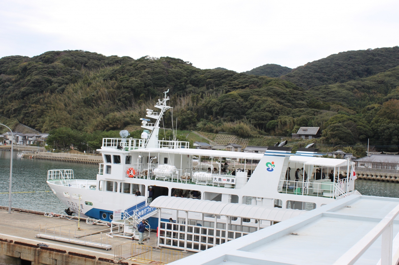 宗像大社前~神湊港まで路線バスで移動(約15分)。
