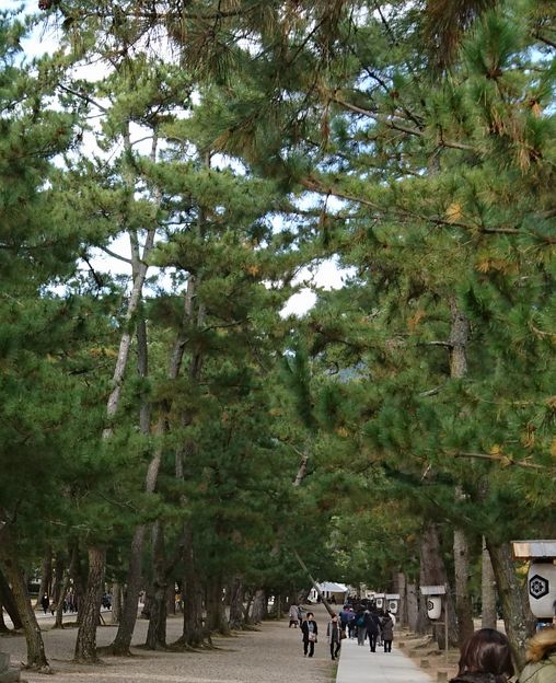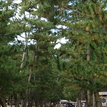 出雲大社の勢溜の鳥居をくぐり、祓橋を渡ったあたり三の鳥居の先が松の馬場です。立派な松並木が続く参道ですが、参拝者はこちらの参道は通ることはできず、脇の舗装された参道を通りました。松の木の根を保護するためやむを得ないようです。