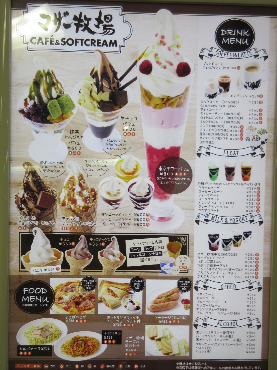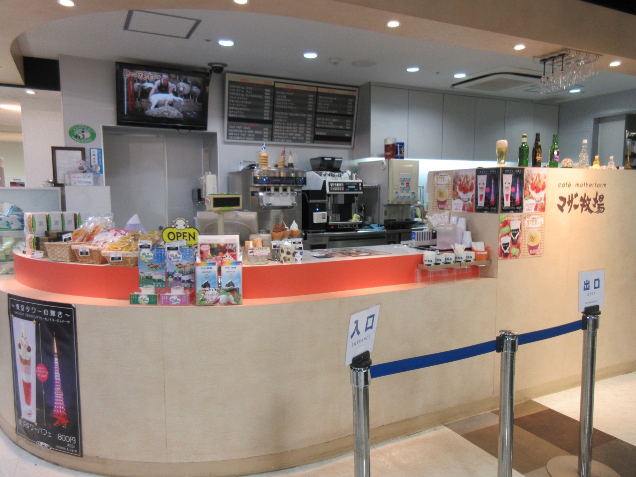麻布台を散策した後、東京タワーで休憩をするために訪れました。東京タワー3階にあります。ドリンク、ソフトクリーム、パフェ、スパゲティなどの軽食がありました。ソフトクリームにマンゴソースをかけたマンゴーアイランドと果肉が入っている苺ソースと飲むヨーグルトのつぶつぶ苺ヨーグルトを注文しました。さっぱりしたマンゴソースとソフトクリームの組み合わせは程よい甘さでした。苺ソースを混ぜて飲むヨーグルトは甘いソースと酸味あるヨーグルトが美味しかったです。名物東京タワーパフェを注文した外国の青年は画像を撮っていました。土産用のチーズやサブレも売っていました。東京タワーオフィシャルショップの横にテーブルがあるので、休みながらぼんやりグッズを眺めました。