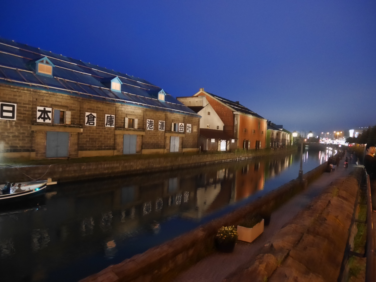 小樽の観光のメインスポットのひとつ。想像ではもっと複雑な運河が張り巡らされているのかと思ったら、長い運河が1本だけ。ちょっと期待外れでした。ただ、運河沿いには古くて風情のある佇まいの倉庫が連なって立っており、いい雰囲気を醸し出しています。