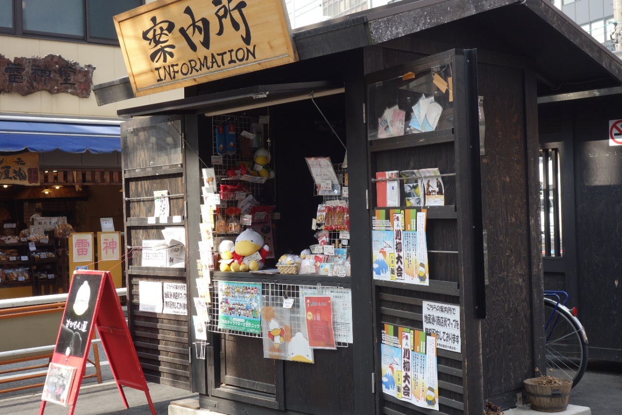巣鴨地蔵通り商店街の公式イメージキャラクターであるすがもんの公式グッズ販売店、そして商店街の案内所でもある小さなブースです。案内所にいらした方に商店街内の行きたいお店の場所を聞いたら親切に教えて下さいました。