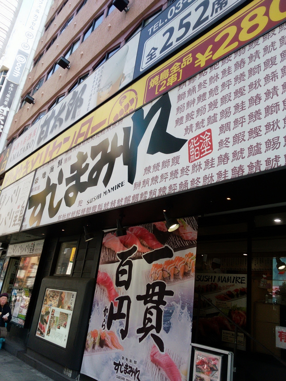 新宿歌舞伎町のセントラルロード(通称:ゴジラロード)沿いにあるお寿司屋さんです。不夜城と言われている歌舞伎町のお寿司屋さんだけあって24時間営業です。お寿司は、1貫100円~と比較的リーズナブルな値段で食べることができますが、ネタも新鮮で美味しいです。