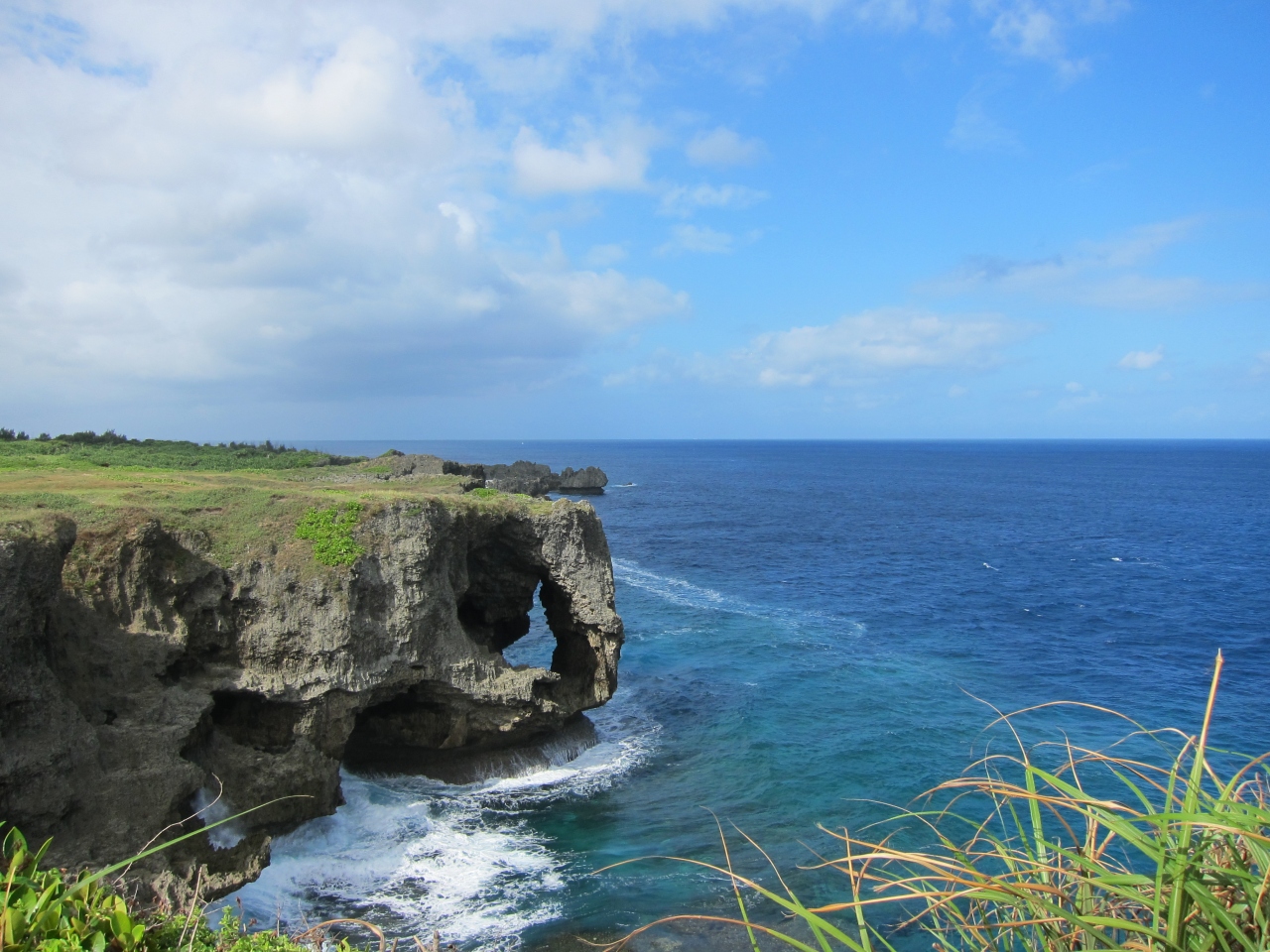 リザンシーパークから美ら海水族館に行くのに、タクシーを利用しましたが、途中に万座毛があるので、寄ってもらいました。駐車場から少し歩いて行きますが、たくさんの人で賑わっていました。奇岩?を見るだけなので、時間はかかりませんが、お天気が良く、気持ちは良かったです。