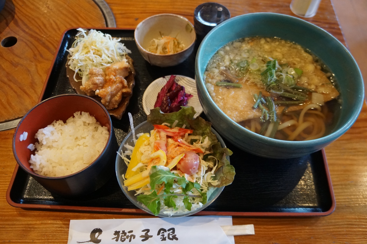 陶の郷の中にある獅子銀です。地元の郷土料理をリーズナブルに出している感じ。私は鶏のから揚げとかの立杭定食1200円をいただきましたが、ぼたん鍋風のセットもあったりして、少し奮発すれば、ここで十分、丹波の本格料理が味わえると思います。いいお店です。