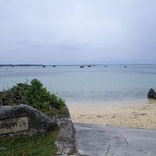 島の周回道路から少し海側に入ったところにあるのだが、入り口に道標があるでもなく、ナビを設定していないと分かりにくり場所だ。駐車場もないが、人や車も全く来ないので、路側に駐車して波打ち際に降りてみた。沖に見える大きな石はすべて過去の津波で流されていたのだという。そんな話が信じられないくらい、波のない静かな入り江である。対岸に下地島空港が見えるが、現在はタッチアンドゴーの練習が行われていないので、とても静かだ。