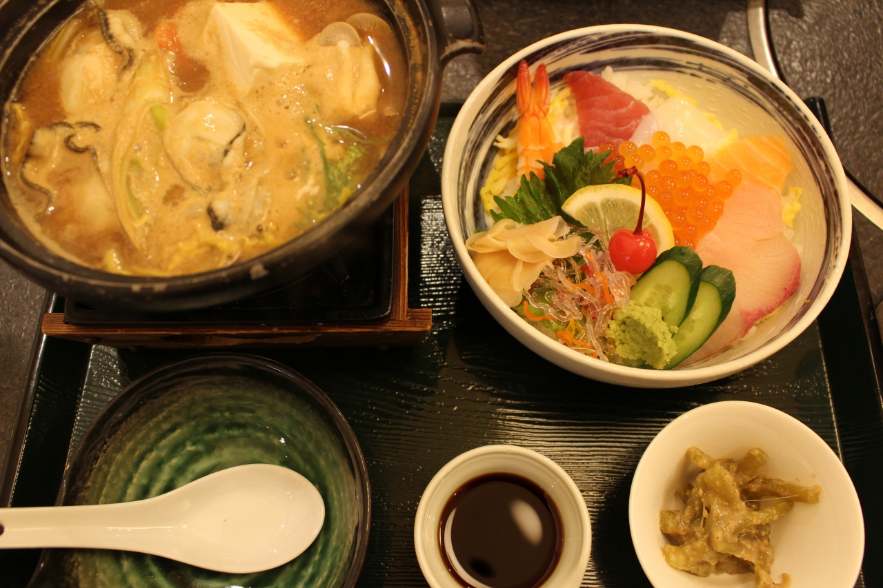 牡蠣みそ鍋と海鮮丼セット@1,500円+税を頼んだのですが、新鮮な大き目のネタで満足しました。
