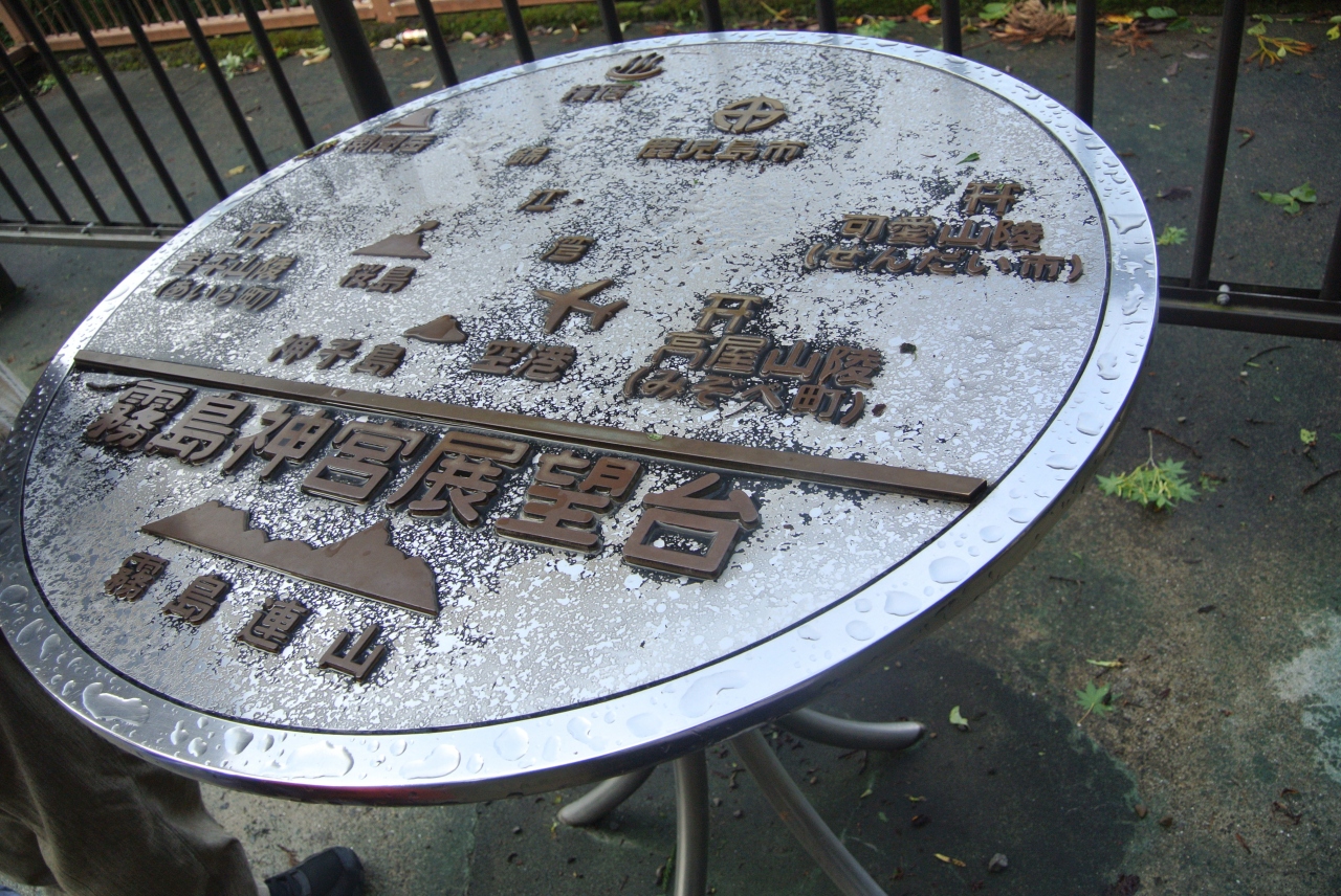 どの方向に何が見えるという案内板(テーブルの形をしている)もあるのでわかりやすいですが、私が行ったときはそれほど天気がよくなく桜島が少し見えた程度でした。お天気がよければ開聞岳も見えるようです。近くには坂本龍馬が霧島神宮を訪れた旨の説明板もありました。