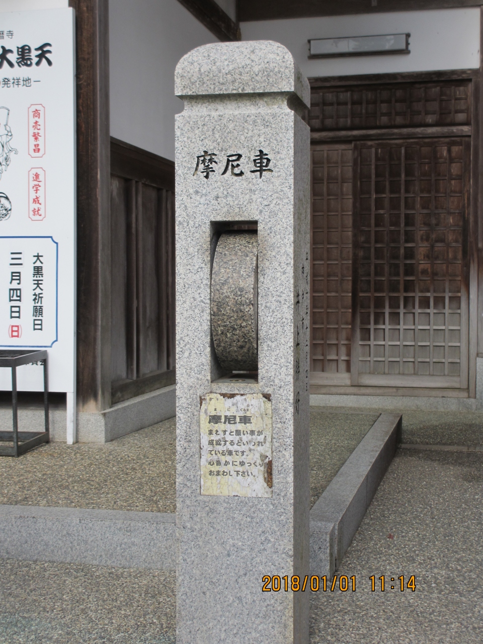 建物前に「摩尼車」があり、