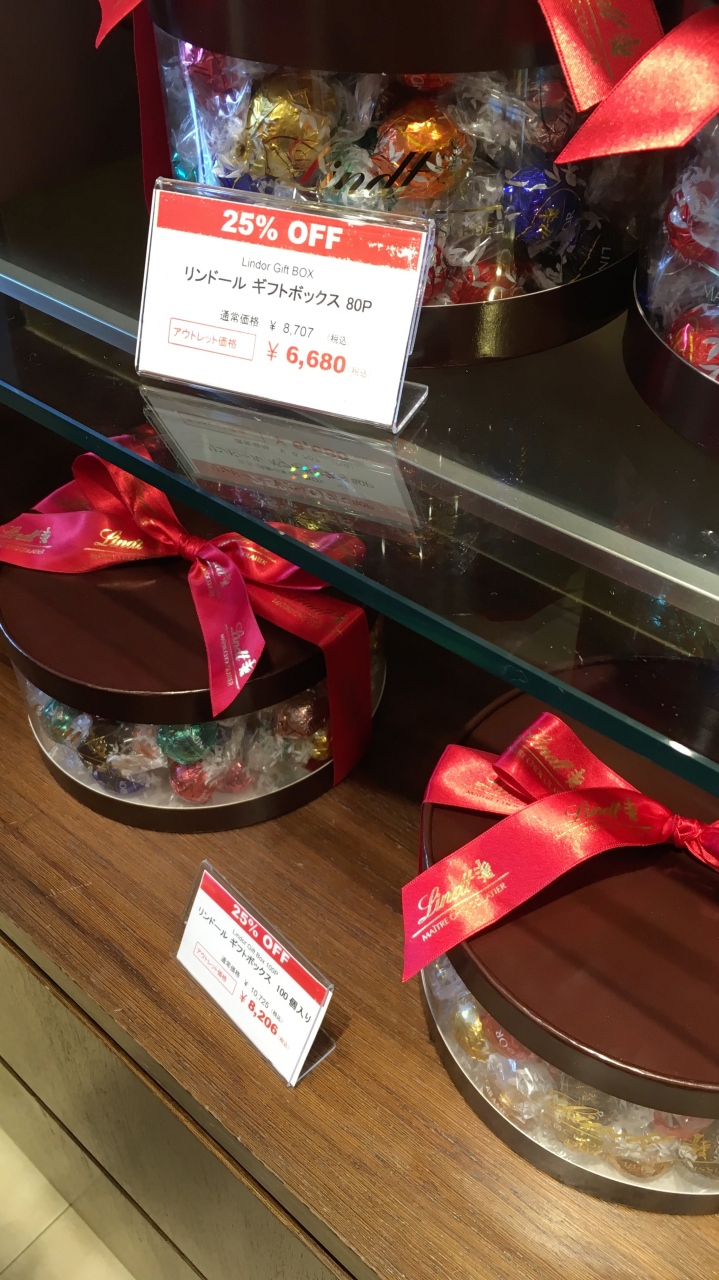 アウトレットにあるので、通常よりは安いです。リンツのお菓子は割引になることはそうそうないので、いつでも混雑しています。セール時期になるとシーズンからはずれたチョコレートが安くなったりしますが、これは普通のミルクチョコレートなどがメインで、プラリネはほぼありません。
