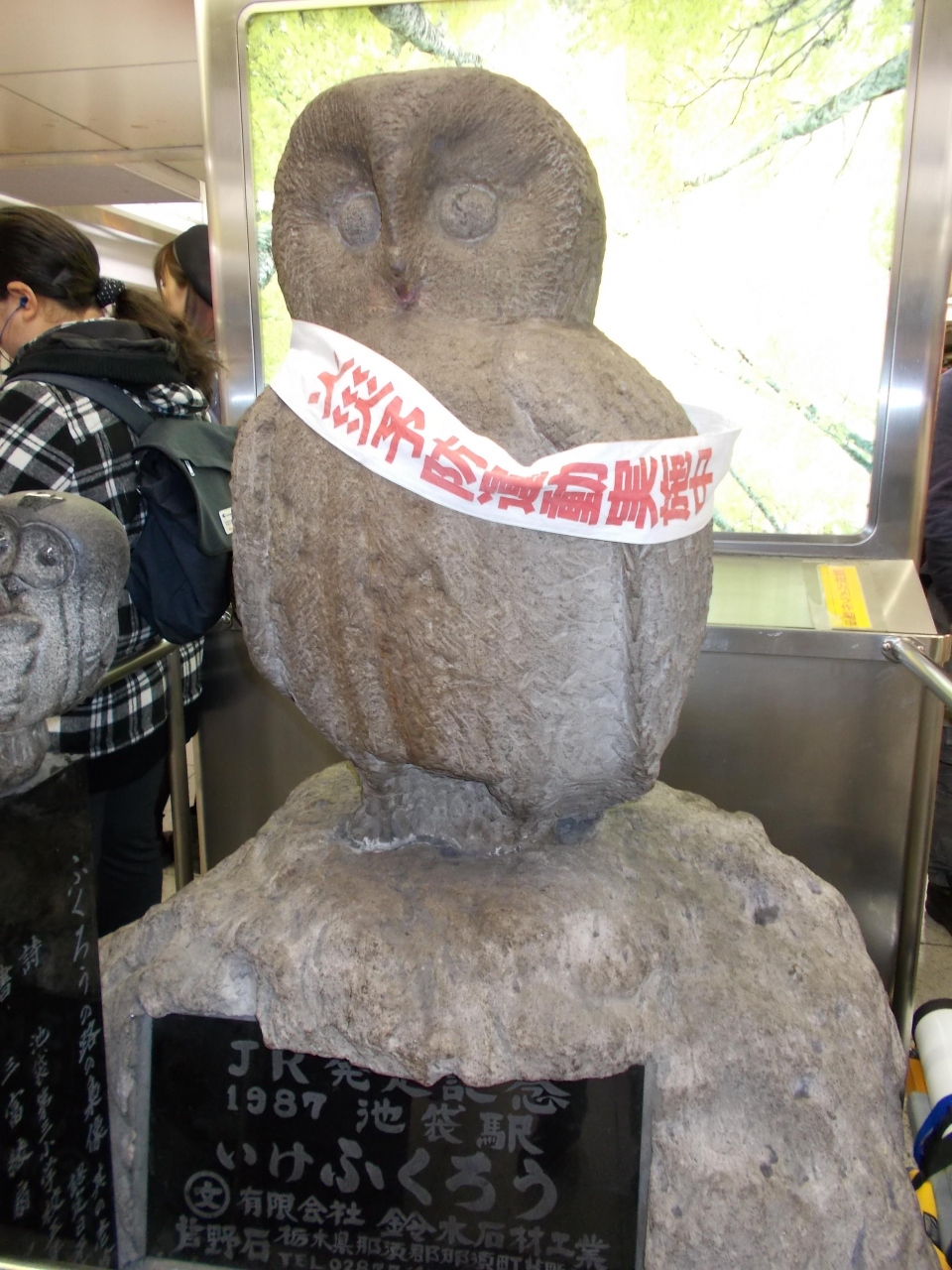 池袋にはフクロウの像は1ヶ所だけではないです。一番有名なのは池袋駅の地下道の中にある石づくりのフクロウです。東口の階段下にあります。このフクロウの像は人との待ち合わせの場として利用されています。いつも待ち人が取り巻いています。