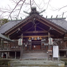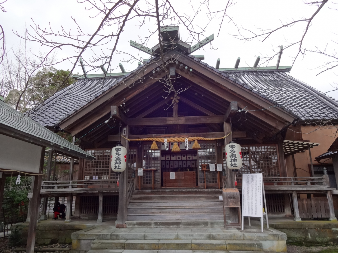 茶屋街の奥にあるこの神社は、浅野川から掘り出された古鏡に由来する神社で、金沢五社のひとつ。ひがしの芸妓衆が節分祭に踊りを奉納し、福豆を撒くことで親しまれているらしい。しかし境内に忍者(人形)を3体ほど見かけたが、何のためなのか不思議だ。神社の横の坂道を登ると徐々に視界が開け、眼下にキラキラ光り流れる浅野川、今歩いてきたひがし茶屋街、黒瓦が連なる家並みが見渡せた。