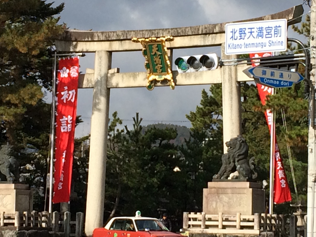 北野天満宮、今出川通に面した入り口に大きく建っている北野天満宮の鳥居。