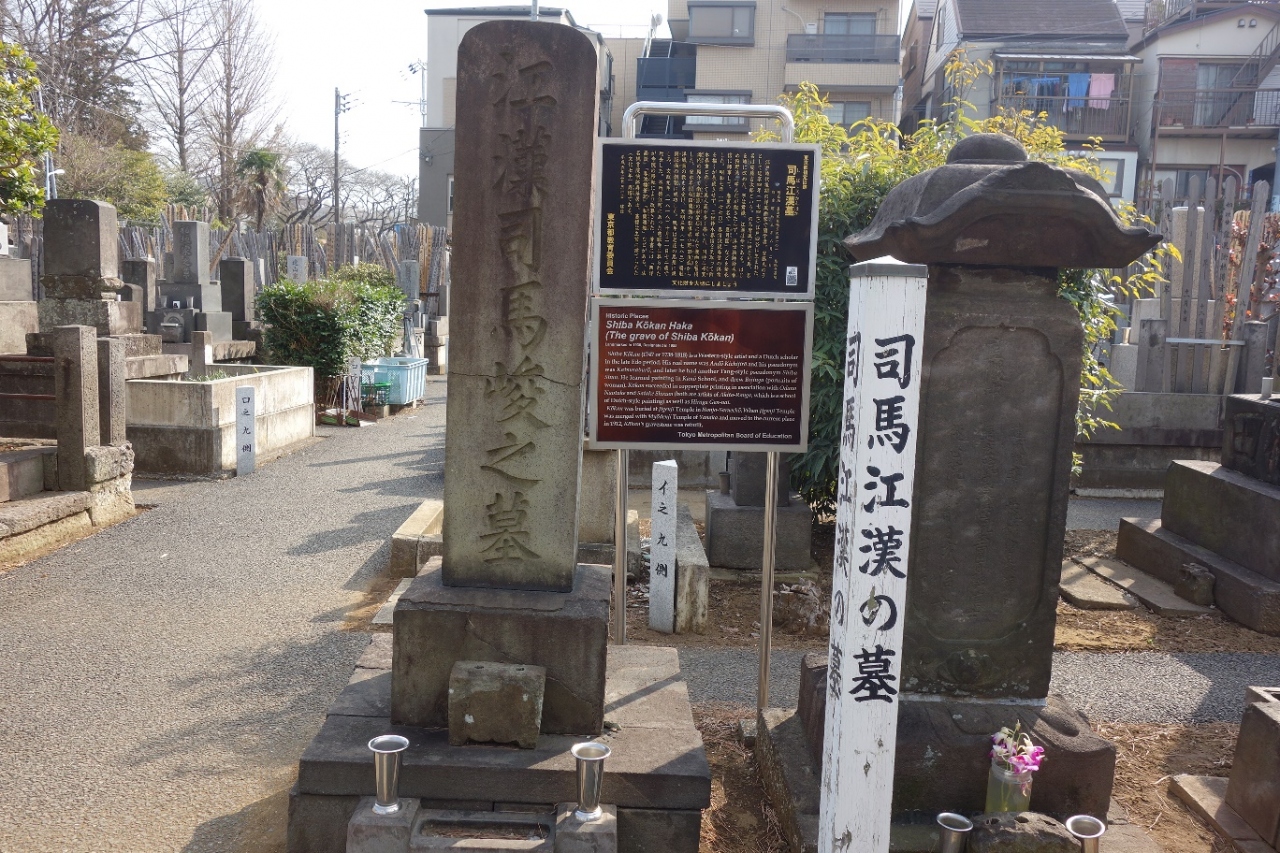巣鴨にある染井霊園に隣接する慈眼寺、その向かい側にある墓地には著名人のお墓があります。司馬江漢のものもその一つで、墓地内には案内板があったりお墓のところに杭や解説板も有って迷わず簡単に見つけられました。
