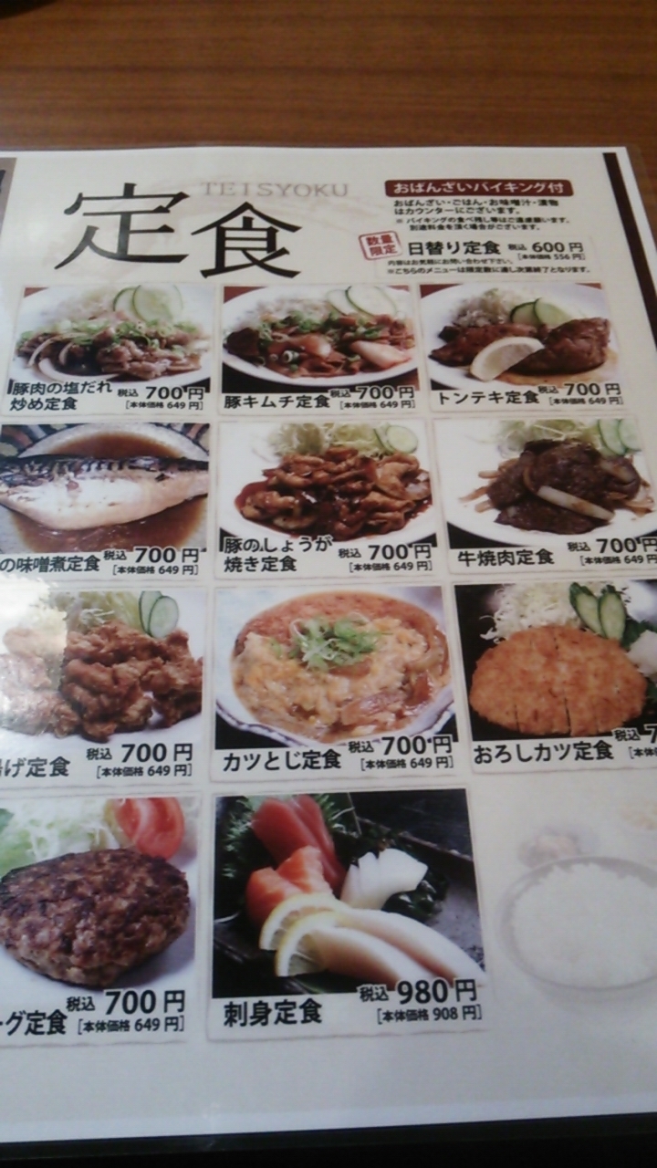 ランチメニューは日替り定食の他、様々なメニューがあり、刺身定食や豚てき定食等ざっと10種類程度のメニューが選べる点は助かりました。