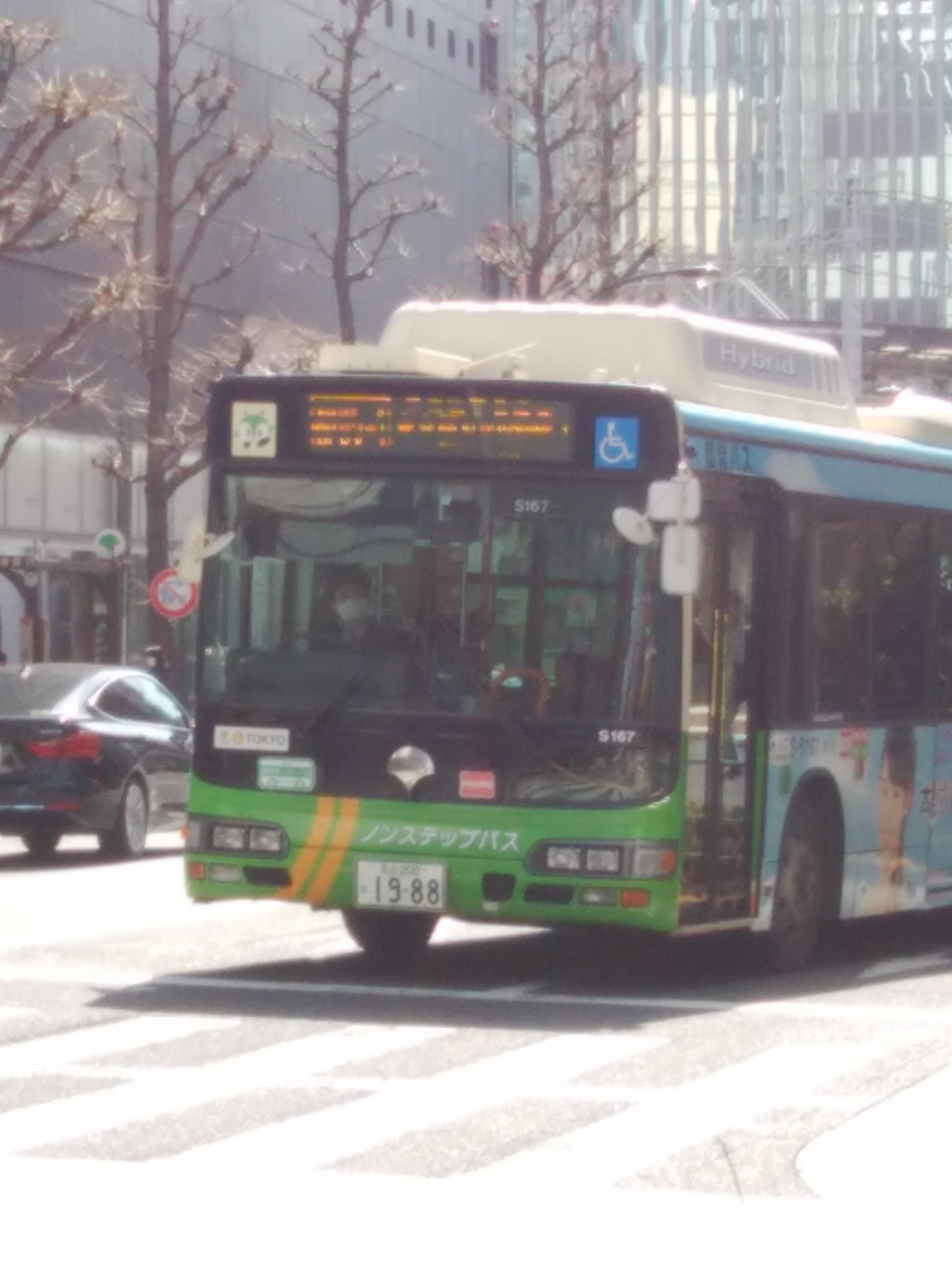 東京都心でバスに乗ることはほとんどないが、有楽町から東京駅丸の内南口まで丁度来た都営バスに乗車してみた。JRやメトロと比し運賃(210円)は高いものの、春の風が吹く大名小路の車窓を楽しむことが出来、混雑する階段昇降もなく、意外に便利な乗り物であると思った。