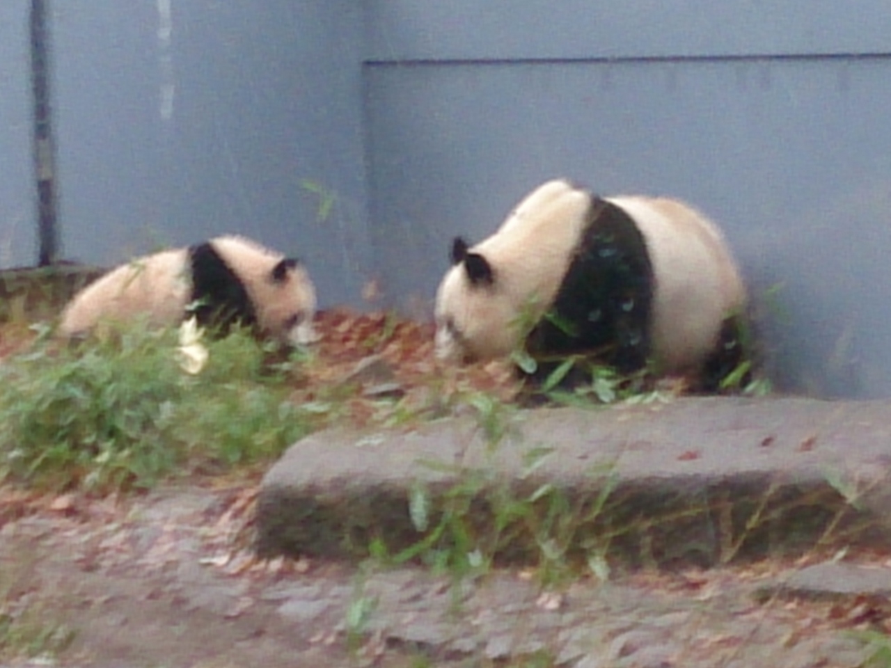 一般観覧より、前に飼育員さんが座ったら、シャンシャンとお母さんがダッシュで前まできました!ガラスごしに、様子を観察しているようでした。2頭が飼育員さんをしっかり見ていたのが、びっくりです。大好きなんでしょうね!