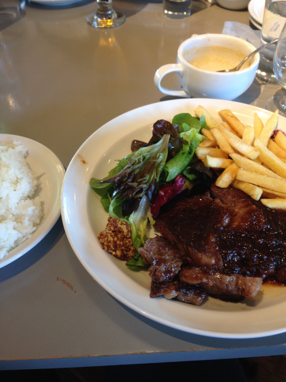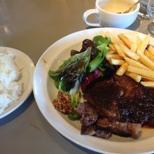 入り口でイタリアの店員さんが出迎えてくれます。1480円でステーキランチを頼みました。ライスは大盛りも出来るそうです。パンを選択したらお代わりをしたら100円でプラス出来ます。ピザは石窯で焼いてくれたので、独特の香ばしさがあります。でも薄い。