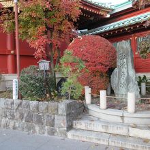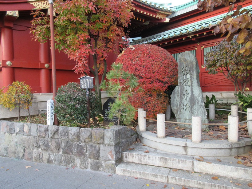 神田明神の境内を散策した際、本堂脇に銭形平次の碑がありました。もちろん時代劇でおなじみとは言っても銭形平次は架空に人物。ただし神田明神近くに住んでいる設定であったことから、神田明神には彼に「あやかった」パネルやこのような石碑が建っていて興味深かったです。