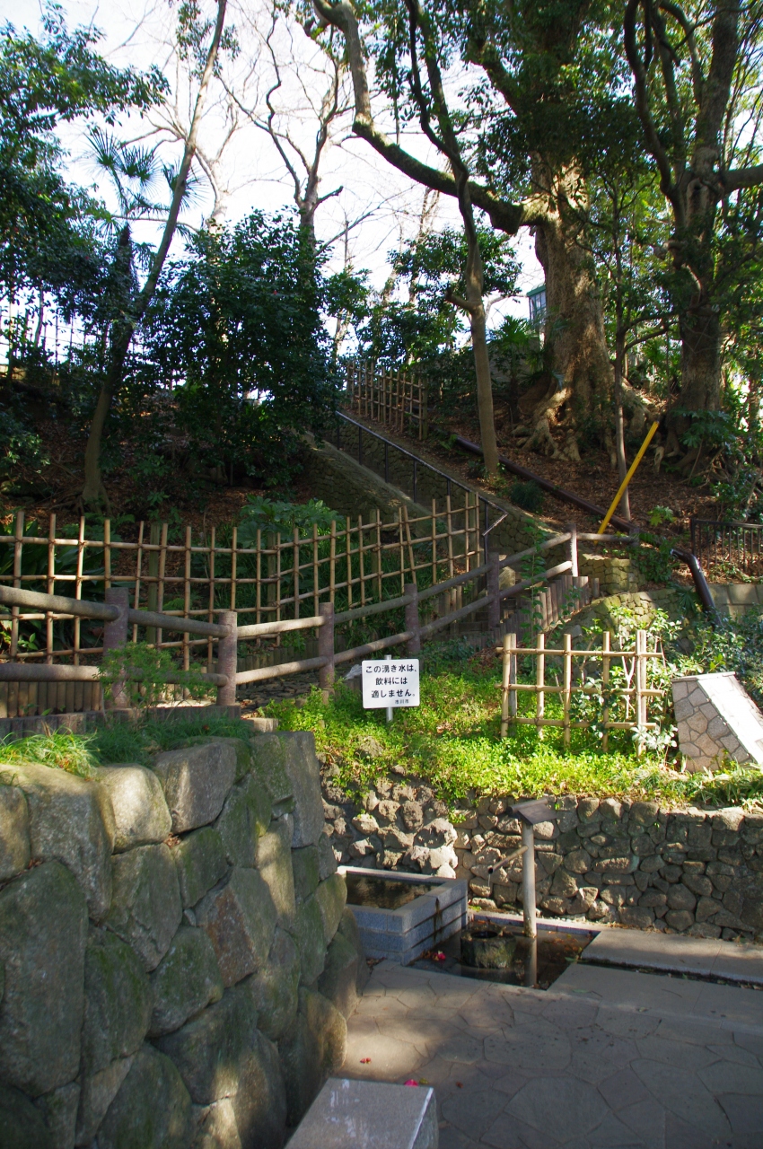 高台は広々としており、池や噴水が有ります。良い天気で、噴水が綺麗でした。桜やバラがたくさん植わっており、咲いたら、綺麗だろうと思いました。噴水の辺りは城址の雰囲気は有りません。所々に梅が咲いていました。