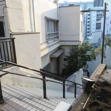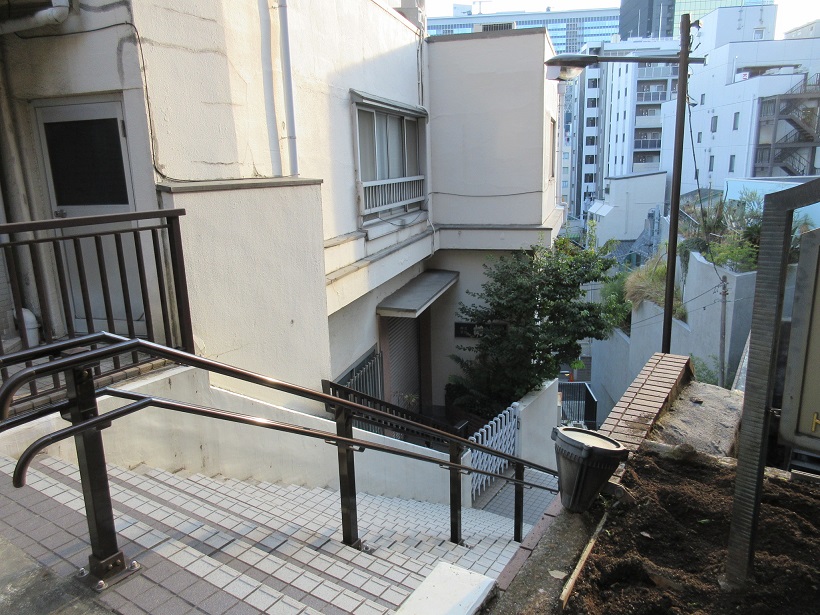 神田明神から秋葉原方面に降りる坂道、というより階段状の雁木坂です。幅も男坂よりは狭く、上りも下りの片側一人づつの幅しかありません。マンションやオフィスビルに囲まれた場所で、地元の方位しか知らない秘密の道のようで、何か得したような気分になりました。