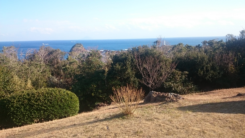 下田の市街地から車で15分ほど走ります。小さな半島のくねくねした山の中の道を走り、須崎の御用邸を過ぎると伊豆七島を望める太平洋の視界が目に飛び込んできますが、その先端にあるのが爪木崎で、1月上旬から2月上旬にかけて一帯に水仙が咲き誇る様は見事です。爪木崎灯台までの遊歩道は昨年の台風の影響で一部通行できなくなっていましたが、それでも岩礁と青い海と黄色く咲き誇る水仙を楽しむことができました。