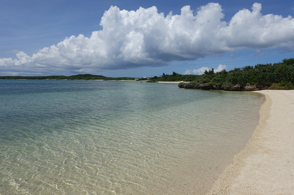 これまで西の浜に来た時はたいてい引き潮で、景観的にはいまひとつという時が多かったです。ところが、今回はたまたま満ち潮のタイミングで、びっくりするほどきれいでした。もともと海水自体は透明度も高くきれいでしたが、潮の干満でこんなにも印象が変わるもんなんだなぁと再認識してしまいました。